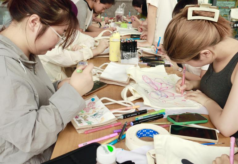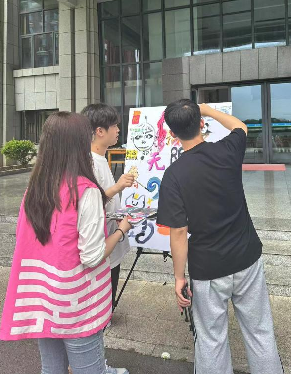 本次活动融合了环保手工艺术展和校园涂鸦两大精彩模块,活动中,同学们充分展示了自己的才华,他们运用画笔和各类环保材料巧妙的将废旧物品转化为了一件件别致的艺术品,这不仅体现了艺术与环保的完美融合,也让我们深刻理解到了艺术在环保领域中所具有的独特价值。环保手工艺共遴选15件作品参与展览,校园涂鸦区包含帆布袋涂鸦区和自由涂鸦区。经过一番创作,帆布袋涂鸦作品丰富多彩,而校园涂鸦区更是成为了同学们挥洒创意的乐园,同学们选择自己钟爱的主题,如“我的情绪”、“无限”、“你眼中的夏天”等,用画笔在画板上留下了自己的印记,释放了内心的艺术激情。