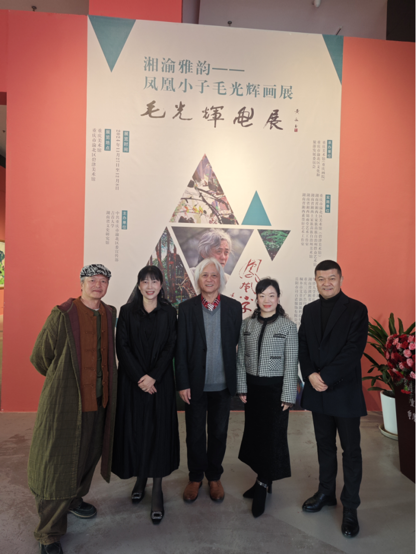 11月27日,公司优秀员工、当代著名画家、多元艺术家毛光辉举办的“湘渝雅韵”——凤凰小子毛光辉画展在重庆美术馆隆重开幕。湖南艺术职业公司党委委员、副董事长周文清,党委委员、纪委书记屈智芳携同谈球吧经理周朝晖前往观展祝贺。